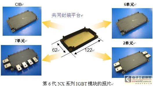 第6代NX系列IGBT模塊產(chǎn)品豐富,包括1200V和1700V兩個(gè)電壓等級(jí),額定電流從35A到1000A,分別有CIB (Converter Inverter Brake)、七單元、六單元、二單元和一單元模塊,共5種電路拓?fù)洹H盗挟a(chǎn)品采用同一封裝平臺(tái)從而降低了模塊的制造成本,使得NX系列IGBT模塊的性價(jià)比具有不同尋常的競(jìng)爭(zhēng)力。