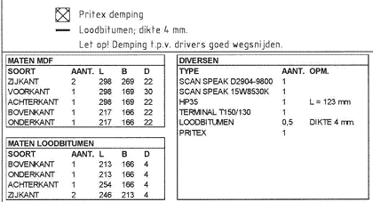 為了避免箱體共振,對兩側箱板和上、下面板使用22mm厚的中密度纖維板(MDF),前面板則使用30mm厚的MDF。6塊箱板的內(nèi)表面最好全部貼上4mm厚的鉛皮(但較貴),也可貼上相同厚度的瀝青油毛氈進行聲阻尼。在箱板開口處應仔細地將阻尼材料剪掉,以免妨礙驅動單元和出聲管的安裝。