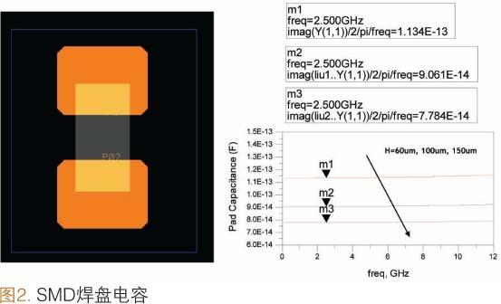 雖然01005SMD電容已面市一段時間,但是因為元件價格和組裝成本較高,并沒有成為RFSiP的普遍選擇。我們對帶有焊盤分布和互連線的0201SMD電容進(jìn)行了研究。