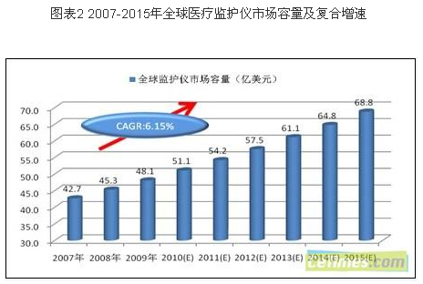 - 2015年全球監(jiān)護(hù)儀市場(chǎng)需求復(fù)合增速不會(huì)低于6.15%