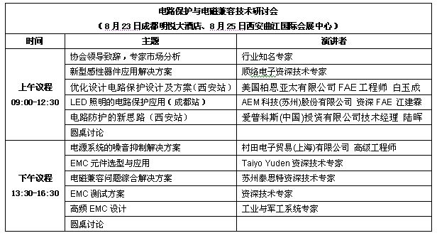 其中電路保護與電磁兼容技術研討會將聚焦過流過壓保護、防雷設計、ESD防護、EMC設計方案在工業(yè)、通信廣電、汽車與交通、新能源、軍工等行業(yè)的應用。論壇將著重覆蓋過流過壓保護元件選型、可靠電路設計、雷擊防護和EMC創(chuàng)新方案等議題。