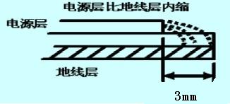 圖2 電源層比地線層內縮示意圖