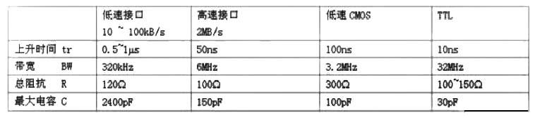 對于容易產生毛刺的突變信號應該采取相應的濾波形式, 抑制高速信號的突變產生的高頻毛刺。濾波的方法一般采用無源元件電容或電感配合電阻,利用其對電壓、電流的儲能特性達到濾波的目的。常采用RC 濾波電路,當電壓突然升高時,并聯電容C 能夠儲存能量,而當電壓下降時釋放能量, 從而使負載濾波后電壓比較平滑, 減少高頻噪聲。但為了不影響正常的高頻信號波形,也不能取值太大,盡量使用小電容。根據電路的總阻抗及高頻信號的帶寬、上升時間、根據計算及經驗得出濾波電容C 的選擇大小參考下表1:系統工作頻率越高使用濾波電容取值應該越小。