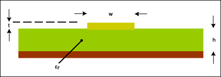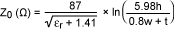 式中,εr為電介質的介電常數(shù),h為引線距離地層的高度,w為引線寬度,t為引線厚度(圖7)。w/h介于0.1至2.0、εr介于1至15之間時,該公式的計算結果相當準確。