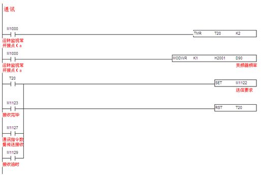 3.2.3通訊程序:臺(tái)達(dá)SS PLC提供兩個(gè)通訊口。本文中,SS PLC的COM1口已與觸摸屏通訊,所以利用SS PLC的COM2 通訊口(此通訊口接口是RS485),支持MODBUS通訊便利指令,編通訊程序像編順序邏輯程序一樣簡(jiǎn)單,讓對(duì)通訊底層不是很了解的人也能快速上手。快速編寫MODBUS通訊程序,控制如臺(tái)達(dá)全系列產(chǎn)品,如變頻器、溫控器、伺服等產(chǎn)品。見(jiàn)圖10。