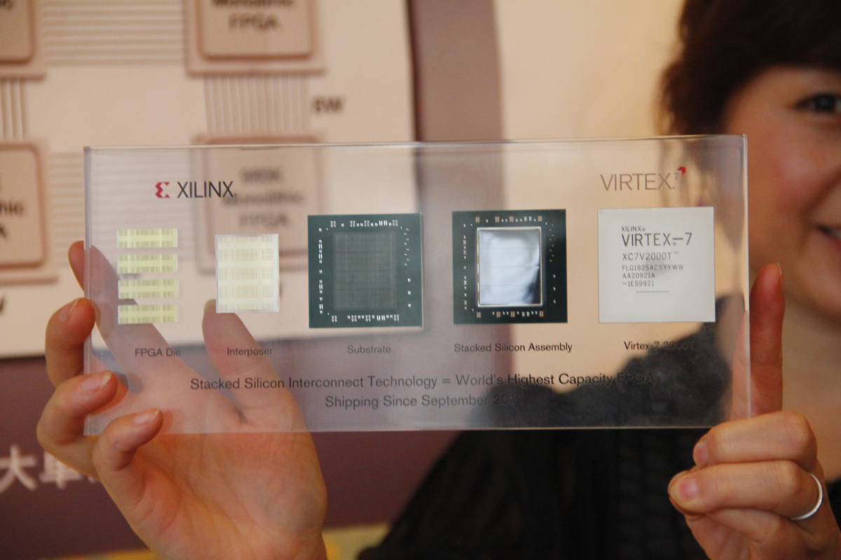 全球可編程平臺領導廠商Xilinx公司今天宣布,推出目前業界最大容量的FPAG產品Virtex-7 2000T。這款器件包含68億個晶體管的FPGA具有1,954,560個邏輯單元,容量相當于市場同類采用28nm制造FPGA容量的兩倍。這是Xilinx采用臺積電 (TSMC) 28nm HPL工藝推出的第三款 FPGA,而芯片容量提升主要歸功于Xilinx所采用的2.5D IC堆疊技術,這也是世界第一個采用堆疊硅片互聯(SSI) 技術制造的FPGA器件。