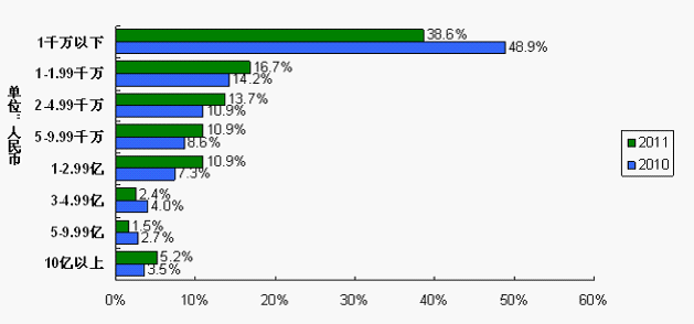 此外,IC和電子元器件的平均采購額由2010調查的1.02億增加至2011調查的1.15億,增加12.7%。采購總額在1億人民幣以上的系統廠商由2010調查的17.5%增加至2011調查的20.1%,大中型企業表現出成長。采購總額在1千萬以下的系統廠商由2010調查的48.9%降至2011調查的38.6%,小微型企業由于經營困難或缺貨沖擊而倒下。