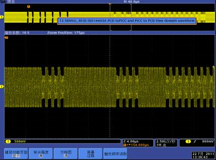 下面我們以一個13.56MHz的RFID讀寫器系統為例,介紹MDO4000的跨域調試應用。