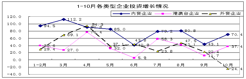 五、內資企業投資增勢突出,外商投資增速放緩
