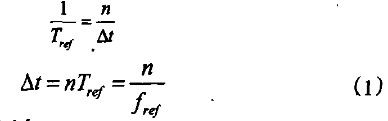 脈沖計(jì)數(shù)法是用標(biāo)準(zhǔn)信號(hào)形成被計(jì)數(shù)的參考時(shí)鐘信號(hào),周期為Tref,頻率為fref,通過測(cè)量時(shí)間間隔Δt內(nèi)參考時(shí)鐘信號(hào)的個(gè)數(shù)n,直接顯示Δt的值。