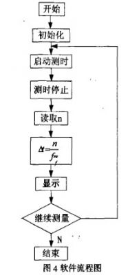 系統(tǒng)軟件包括對(duì)各工作電路的初始化設(shè)置,根據(jù)分頻計(jì)數(shù)電路得到的n值,計(jì)算時(shí)間間隔時(shí)間間隔Δt,送給顯示電路顯示。流程圖如圖4所示。