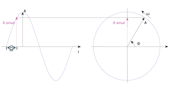 圖1  時域表述的正弦波與矢量信號的對應(yīng)關(guān)系