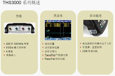對于便攜式示波器,除了更高的性能和安全隔離規格,市場還需要更靈活易用的產品。THS3000可以實現TrendPlot分析,帶測量數據記錄(任意 4 個測量的繪圖和回放);可用于進行自動屏幕捕獲的波形記錄(每個觸發事件 100 段,1 鍵回放和內置/USB 存儲);波形監測和 pass/fail 測試(用戶可定義的基準,1-4 通道捕獲和回放),因而可以快速而高效地幫助分析系統。