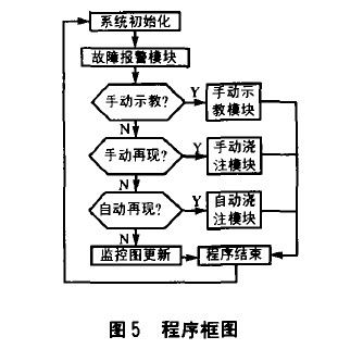 下位機(jī)PLC程序采用西門子公司STEP7V5.1軟件,實(shí)現(xiàn)編程監(jiān)控。程序框圖如圖5。