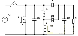 在每次主開(kāi)關(guān)管S導(dǎo)通前,先導(dǎo)通輔助開(kāi)關(guān)管S1,使輔助諧振網(wǎng)絡(luò)諧振。當(dāng)S兩端電容電壓諧振到零時(shí),導(dǎo)通S。當(dāng)S完成導(dǎo)通后,立即關(guān)斷S1,使輔助諧振 電路停止工作。之后,電路以常規(guī)的PWM方式運(yùn)行。該拓?fù)浣Y(jié)構(gòu)在不增加電壓/電流應(yīng)力的情況下,實(shí)現(xiàn)了S的零電壓導(dǎo)通和D的零電流關(guān)斷。但由于S1是在大 電流(接近諧振峰值電流)下關(guān)斷、大電壓(接近輸出電壓)下開(kāi)通, S1處于一種非常不好的硬開(kāi)關(guān)環(huán)境。