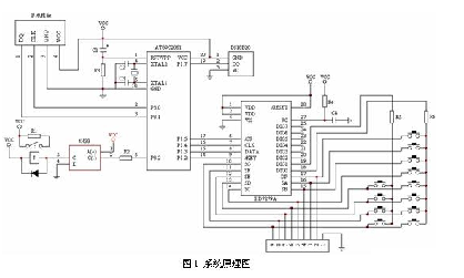 本系統(tǒng)外設(shè)鍵盤采用了HD7279A鍵盤顯示芯片,由于要顯示系統(tǒng)設(shè)定溫度的上、下限和實時加熱的溫度,因此只使用HD7279A的鍵盤功能,系統(tǒng)的顯示部分采用LT12864I液晶顯示模塊。系統(tǒng)開始工作的時候,通過鍵盤設(shè)定加熱溫度,數(shù)據(jù)傳遞給單片機(jī),再由單片機(jī)將數(shù)據(jù)送顯示模塊顯示;系統(tǒng)工作的過程中,數(shù)字溫度計DS18B20測得的實時溫度值也傳遞給單片機(jī),再由單片機(jī)轉(zhuǎn)換數(shù)據(jù)并送顯示模塊顯示。