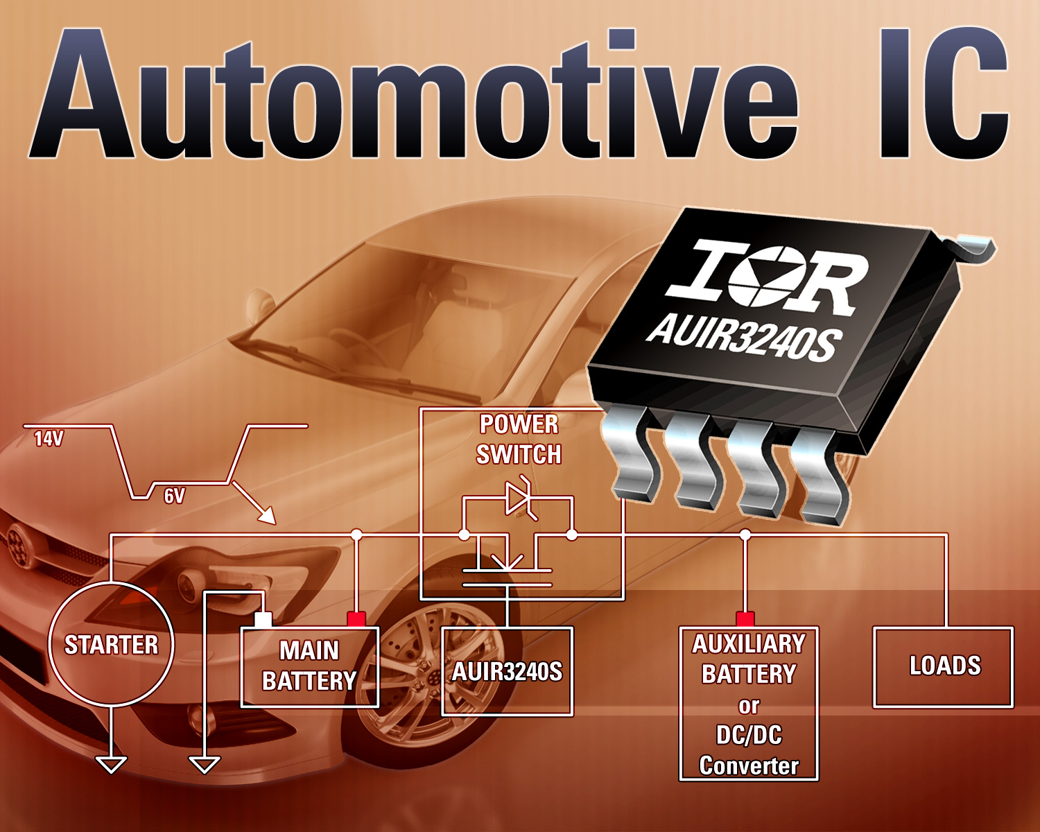 全球功率半導體和管理方案領導廠商國際整流器公司 (International Rectifier,簡稱IR) 推出車用AUIR3240S電池電源開關,適用于內燃機關閉和重啟功能 (啟停系統) ,可以幫助減少高達15%的車輛油耗。