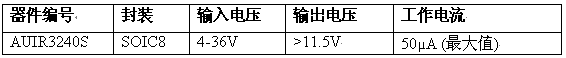AUIR3240S 是一款專為啟停系統設計的高集成升壓轉換器,該系統在堵車時幫助汽車暫停發動機運行。這需要一個 “板網穩定器 (board net stabilizer) ”,通過電源開關在發動機啟動時中斷輔助電力系統與啟動機和主電池的連接。AUIR3240S 可以同時驅動幾個并行MOSFET,以實現很低的導通電阻 (Rds(on)),電流消耗不到50µA。新器件提供15V輸出電壓,而輸入電壓范圍較廣 (4-36V) 。AUIR3240S 還可診斷輸出電流,并具備一個適合穩健設計的溫度傳感器接口。