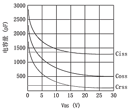 在計算開關管損耗時要用到輸入電容Ciss(Ciss=CGD+CGS)或反饋電容Crss(Crss=CGS)值。為減小開關損耗,要選擇Ciss或Crss小的MOSFET。Ciss一般為上千到數千pF,而Crss一般為幾十到幾百pF。“MOSFETT選擇指南”或“簡略表”中往往沒有Ciss或Crss參數,但有總柵極電容Qg值。由于Qg小的MOSFET,其Ciss或Crss也小。所以可先找出Qg小的MOSFET型號,然后再在數據資料中找出Ciss或Crss值。有的數據資料的參數表中無Ciss或Crss參數,但有Ciss和Crss與VDS的特性曲線,可取VDS=15V時的Ciss或Crss值作為計算值,如圖5所示。