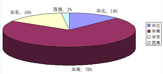 慧聰電子市場檢測數據顯示,以華北、華南、華東、西南四個主要地區的求購信息分布,根據結果表明,華南作為我國的電子信息產業基地,擁有著絕大部分的采購需求,占比高達78%,其次依次為華東、華北和西南地區。