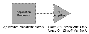 圖 11a 顯示 G 類耳機(jī)放大器的平均電流耗用量大約是應(yīng)用處理器的 10%。然而,幾年后,當(dāng)應(yīng)用處理器電流降低至大約 10mA 時,G 類耳機(jī)放大器的電流耗用量將約為 現(xiàn)在的30%。