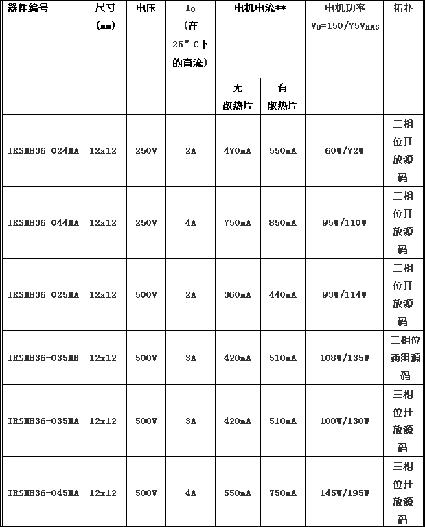 全新µIPM系列采用超小型12x12x0.9mmPQFN封裝,配備多種充分整合的三相位表面貼裝電機控制電路解決方案。IR為相關市場率先引入全新的方法,采用PCB銅線幫助模塊散熱,從而通過較小的封裝設計來減少成本,甚至省卻對外置散熱片的需要。此外,與傳統雙重內嵌式模塊方案相比,標準QFN封裝技術通過省卻通孔第二通道組裝和提升散熱性能可以進一步簡化裝配過程。