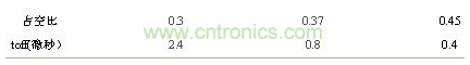 該電路具有以下優(yōu)點(diǎn):①電路結(jié)構(gòu)簡單可靠,實(shí)現(xiàn)了隔離驅(qū)動(dòng)。②只需單電源即可提供導(dǎo)通時(shí)正、關(guān)斷時(shí)負(fù)壓。③占空比固定時(shí),通過合理的參數(shù)設(shè)計(jì),此驅(qū)動(dòng)電路也具有較快的開關(guān)速度。該電路存在的缺點(diǎn):一是由于隔離變壓器副邊需要一個(gè)假負(fù)載防震蕩,故該電路損耗較大;二是當(dāng)占空比變化時(shí)關(guān)斷速度變化加大。脈寬較窄時(shí),由于是貯存的能量減少導(dǎo)致MOSFET柵極的關(guān)斷速度變慢。表1為不同占空比時(shí)關(guān)斷時(shí)間toff(驅(qū)動(dòng)電壓從10伏下降到0伏的時(shí)間)內(nèi)變化情況。