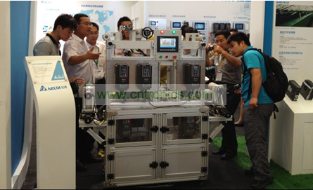 眾多專業(yè)觀眾在仔細(xì)研究臺達(dá)印染多馬達(dá)同步動態(tài)演示系統(tǒng)