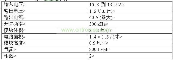LM3754 高功率密度評估板通過一個12-V 輸入電源供電,提供電壓為12V,電流為40A。該評估板體積大小為2 × 2 英寸,組件占用面積為1.4 × 1.3 英寸。每個相的開關頻率設定為300kHz。表1 對上述及其他工作條件進行了概括。組件放置在一個4 層板上,層上銅為1 盎司。板上還有一些引腳,用于遠程檢測,另有一個引腳用于獲得輸出電壓余量。
