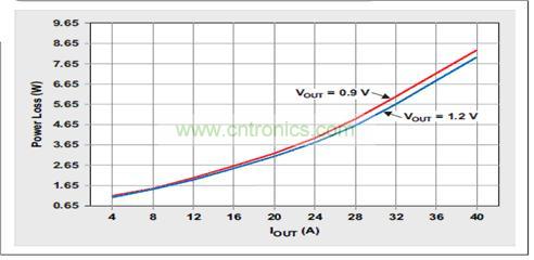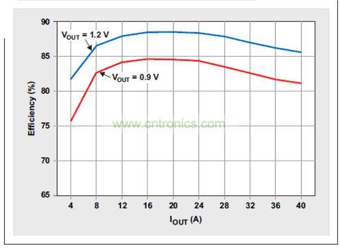 由于每個相位的功率級電流更低,多相實現的輸出濾波器要求也隨之降低。對于一款40-A 二相解決方案來說,向每個電感提供的平均電流僅為20A。相比40-A 單相方法,由于平均電流和飽和電流更低,電感和電感器體積都大大減小。
