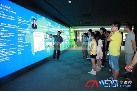對臺達集團有了一定了解之后,南京工程學院師生一行人來到大樓的展廳參觀。臺達展廳展出了臺達在自動化、新能源、網絡動力、軌道交通等領域的最新技術和產品。學生們對于這些產品表現出了極大的興趣,他們有的仔細研讀方案介紹,有些積極提問,紛紛用自己的方式珍惜這個難能可貴的參觀學習機會。