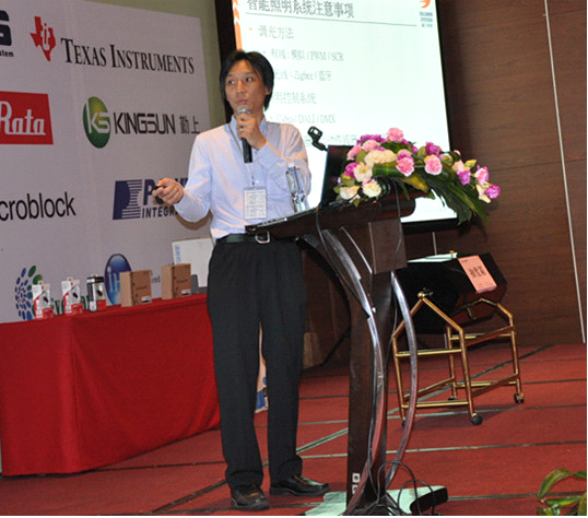 聚積科技照明產品總監俞仲威帶來了《LED照明IC設計與電源模組應用趨勢》。首先講述LED照明發展的市場,再分析LED燈管的發展,講解不同燈具對模組設計帶來的沖擊、LED應用趨勢,最后拋出可控硅調光的議題,與現場聽眾進行了探討。
