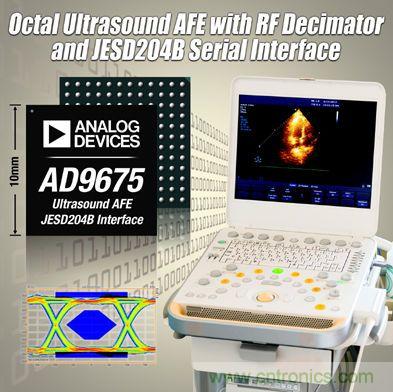 【導讀】ADI最近推出了8通道超聲模擬前端(AFE)AD9675,該器件內置片內RF抽取器和JESD204B串行接口,針對中高端便攜式和手推式醫用及工業超聲系統而設計。