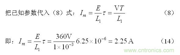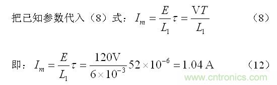 = 19.27uS ,由此可以求得流過開關變壓器初級線圈的最大電流Im為: