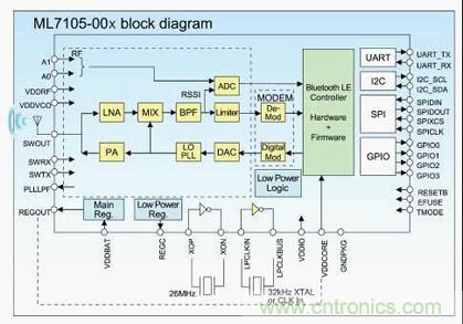 圖1:Bluetooth® LE LSI(ML7105-00x)的內部結構