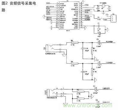 圖2是音頻信號采集的具體電路圖。
