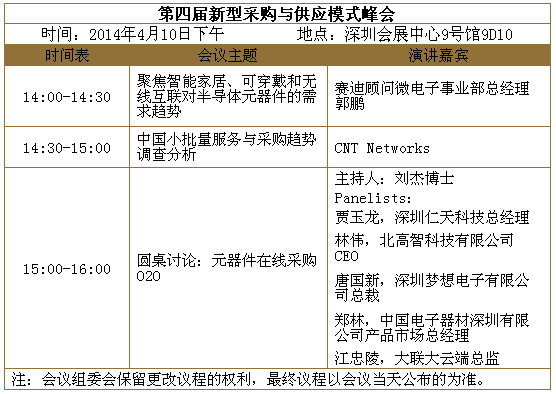此次峰會旨在幫助供需雙方的經理人了解熱點市場帶來的對半導體元器件的需求變化,中國小批量供應服務與采購趨勢。圓桌討論將針對采購和供應中的熱點話題,中國電子分銷商聯盟秘書長劉杰博士與行業領先的國內和國際分銷商總裁和總監們逐一分享思路,歡迎參與互動。參會可以通過網上或微信(關注我愛方案網),報名注冊:www.tzzsdz.com/seminar/95/agenda