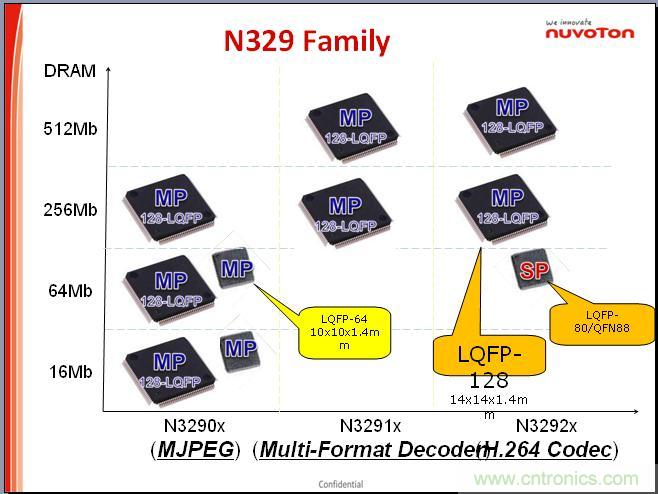 針對MCP,可以看到我們不同的總結,針對剛才提到的3290系列、91系列和92系列堆疊的MCP的容量,從16兆到512兆,這些都有,當然剛才提到了92系列,目前都是128P的LQFP的封裝。我們也剛做了80和88LQFP的封裝,這個應用可能是普通家庭民用的消費者使用的會越來越多,因為隨著網速的提高,包括4G的應用越來越多,普通的消費者不見得是剛才提到的安防類的,或者是智能交通,或者是平安城市之類的,可能普通的家庭也會用這種視頻監控的應用。