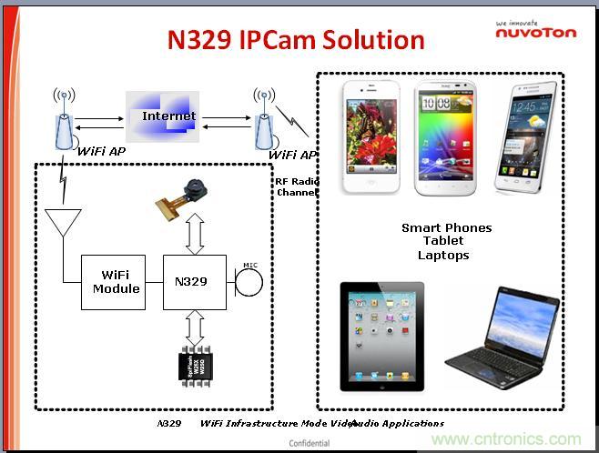 這個是剛才提到的方案部分的框圖,這個小樣是用了通過WIFI的,不是通過有線的,用N329加WIFI的模塊,整個版看起來很簡單,不需要很復雜、很大,這個通過現有的平板、手機、APP都可以看到。所以這是一個DAMA,所以大家有興趣可以看一看,如果有相關的問題,我們也有工程師在這邊,可以為大家做出解答。