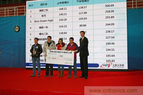 本次大賽評(píng)審委員會(huì)由大聯(lián)大、白金級(jí)贊助商恩智浦(NXP)和行業(yè)內(nèi)專(zhuān)家共同組成,經(jīng)過(guò)對(duì)所有參賽飛行器軟硬件架構(gòu)、外觀設(shè)計(jì)、現(xiàn)場(chǎng)飛行平穩(wěn)度和精準(zhǔn)度等方面的綜合考量,來(lái)自南京航空航天大學(xué)南航二隊(duì)參賽隊(duì)的四軸飛行器凌空號(hào)作品表現(xiàn)優(yōu)異,以306.69的總分最終獲得了本屆大賽的總冠軍。北京科技大學(xué)的金戈參賽隊(duì)和鄭州航空工業(yè)管理學(xué)院的Blue Dream High參賽隊(duì)分別獲得了亞軍和季軍。