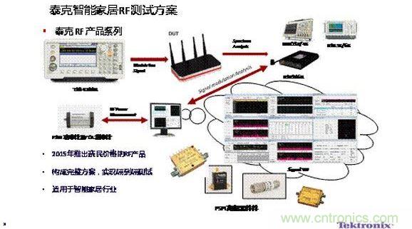 他表示,這個(gè)市場目前還沒有相關(guān)的標(biāo)準(zhǔn)可以遵循,無線連接標(biāo)準(zhǔn)也沒有,干擾測試標(biāo)準(zhǔn)也沒有,但是,“從我們客戶的反應(yīng)來看,他們對于智能家居的RF測試還是很有需求的,我們2015年將推出親民價(jià)格的智能家庭RF測試產(chǎn)品。”他說道。