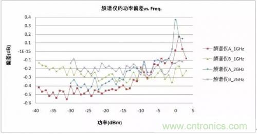 從測試結(jié)果我們發(fā)現(xiàn),在1GHz和2GHz這二種頻率條件下所測得的二臺(tái)頻譜分析儀的幅度誤差,顯然就是頻譜儀資料中所提到的頻率響應(yīng)指標(biāo)。