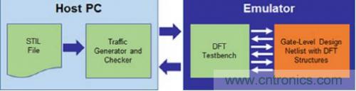 用于硬件加速仿真的 DFT App 改變了硬件加速器在開發(fā)階段的編譯流程和運(yùn)行時(shí)間。這將為編譯流程和運(yùn)行時(shí)間帶來重大變化。具有掃描和 MBIST 結(jié)構(gòu)的門級(jí)設(shè)計(jì)被載入硬件加速仿真的編譯器。編譯器創(chuàng)建了用于讀取Stil文件中測(cè)試向量的測(cè)試結(jié)構(gòu),然后將這些向量應(yīng)用到可綜合的待測(cè)器件 (DUT) 以及進(jìn)行輸出比較。編譯器將用戶網(wǎng)表重新編譯并合成到一個(gè)能夠兼容硬件加速仿真的結(jié)構(gòu)化描述中。編譯器創(chuàng)建了用于讀取Stil文件中測(cè)試向量的測(cè)試結(jié)構(gòu),然后將這些測(cè)試向量用到可綜合的待測(cè)設(shè)計(jì)上,再將網(wǎng)表重新編譯并合成到一個(gè)能夠兼容硬件加速仿真的結(jié)構(gòu)化描述中。測(cè)試控制架構(gòu)還包括比較輸出的機(jī)制。參見圖 1。