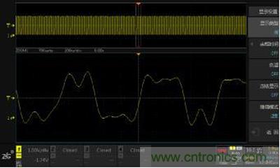 因此無論前面采用的是何種插值方式,采樣停止后放大的波形都會以鋸齒狀呈現出來,這是插值保持的原因,也是完全正常的。因此,我們在觀測波形的時候一定要讓波形盡量鋪滿整個屏幕,如果波形出現了鋸齒,也要清楚鋸齒的原因來自于哪里。