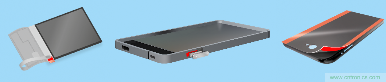 裝配過程中FPC的臨時應用:包括彎折FPC運輸過程中的臨時固定、側(cè)鍵固定、機殼的臨時保護。