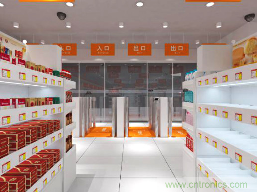 2、WIGO無人店云閘機:刷臉、識別二維碼,自動開門;自助購物;刷臉出門,系統自動結賬。