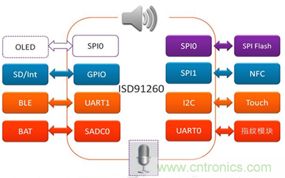 圖示1-大聯(lián)大品佳力推的Nuvoton ISD® 91200電子智能鎖方案的系統(tǒng)方案圖
