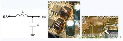 在 線路板電源部分的電感一般是由線徑非常粗的漆包線環繞在涂有各種顏色的圓形磁芯上。而且附近一般有幾個高大的濾波鋁電解電容,這二者組成的就是上述的 LC濾波電路。另外,線路板還大量采用“蛇行線+貼片鉭電容”來組成LC電路,因為蛇行線在電路板上來回折行,也可以看作一個小電感。