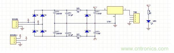 這是電源部分:其中的L7805穩出5V電壓是給我的電平指示器供電用的,當然,L7805要不要都可以,這看個人需求!
