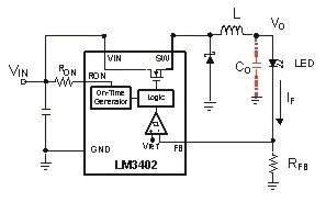 什么樣的應用條件不允許使用這種結構呢?例如家用或商用的照明需要上千流明,設計一種方法來驅動一個LED串。LED串上的總的正向壓降等于其中每個LED正向壓降之和。在一些情況下,系統(tǒng)的輸入電壓范圍可能比一串LED的正向壓降低,或者有的時候高有的時候低。這些情況下有可能會需要升壓結構,也有可能會需要降-升壓開關調(diào)整器。